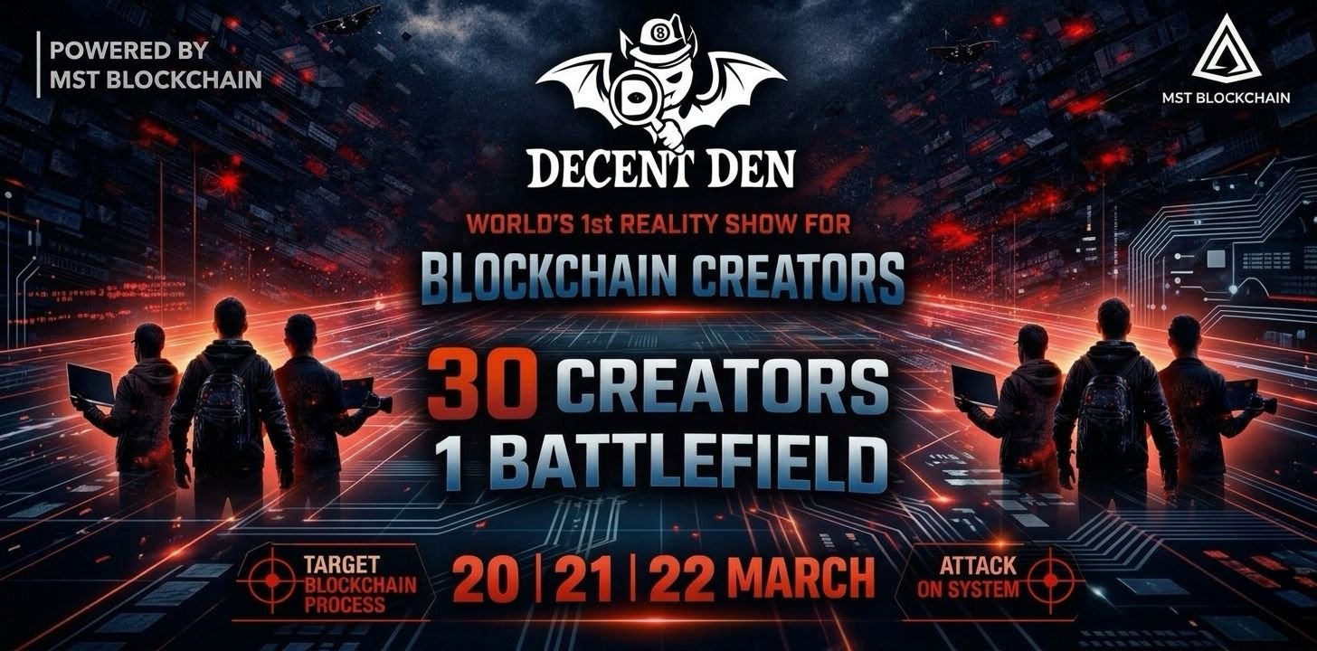 Decent Den, the world’s first Blockchain Reality Show, is set to take place from 20th 21st and  22nd in Indore, bringing together 30 top Web3 creators in a high-intensity, competitive format inspired by global hits like Bigg Boss, Indian Idol, American Idol, and Beast Games – but with a revolutionary twist: powered by MST blockchain.