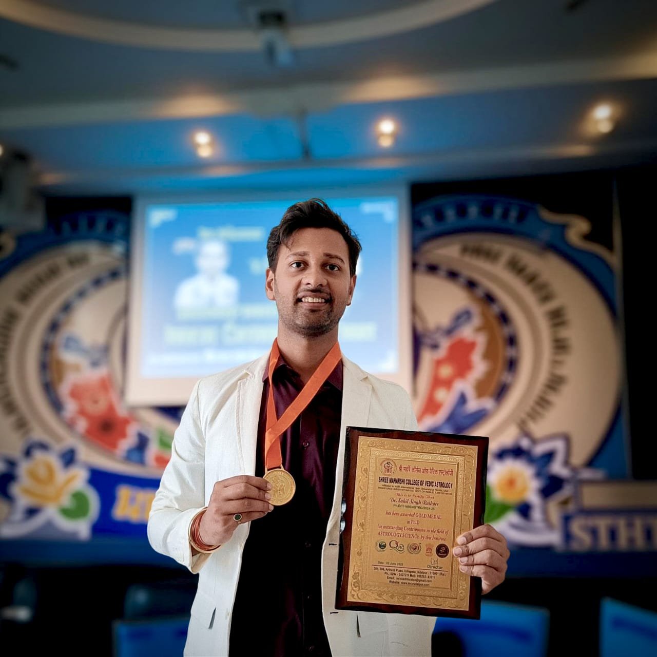 In 2025, years of relentless dedication culminated in a singular honor:an Honorary Doctorate with a Gold Medal, awarded in collaboration with NITI Aayog, Government of India. The recognition celebrated his pioneering research on how planetary alignments influence human behavior and relationships—work that opens new avenues in the serious, methodical study of astrology. By treating horoscopes as maps of tendencies rather than verdicts, Saahil’s approach helps people make wiser, more intentional choices about love, work, and wellbeing.